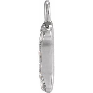 Weight: 0.14 DWT (0.22 grams) Collection: Petite Pave Selling Unit of Measure: EA Approx. Length: 5.5 mm Approx. Width: 7 mm Plating Type: Rhodium-Plated Dangle Jump Ring ID: 1.3 mm Surface Finish: Polished Primary Stone Size: 1 mm Primary Stone Shape: Round Primary Stone Count: 8-stone Diamond Color: H+ Primary Stone Type: Diamond Diamond Clarity: I1 Dangle Size: 5.5 x 7 mm