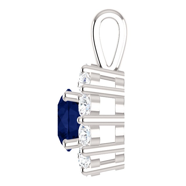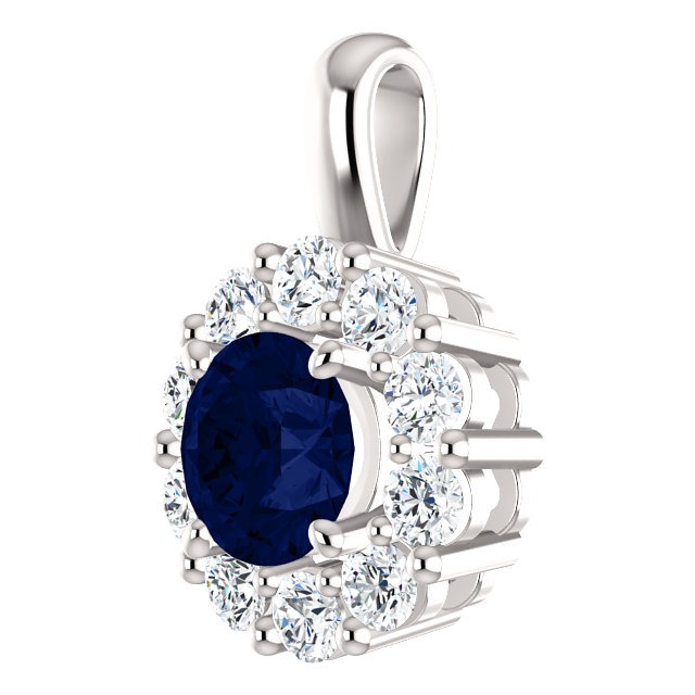 14K White Gold Blue Sapphire & 1/2 CTW Diamond Halo-Style Pendant from Leonard & Hazel™