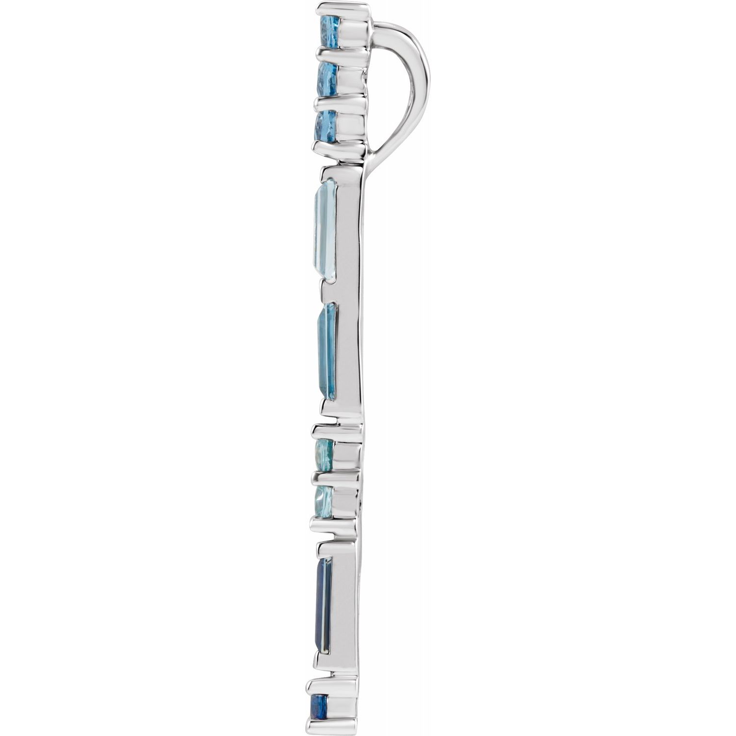 14K White Gold Blue Multi-Gemstone Bar Pendant