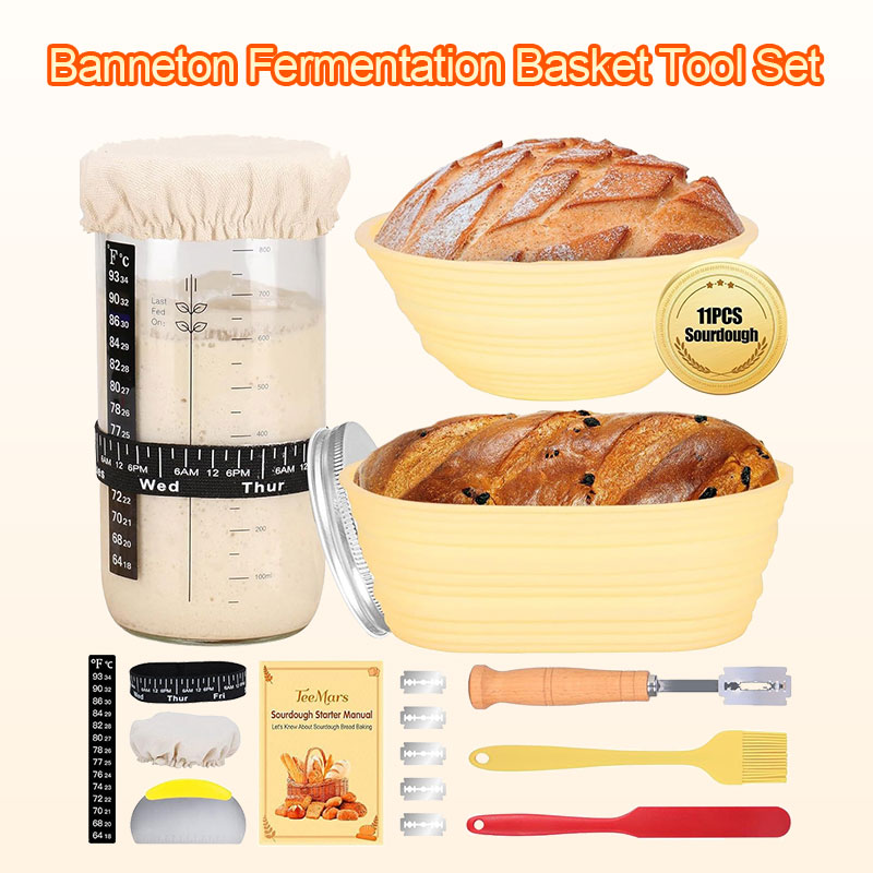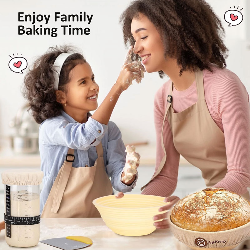 About this itemThe All-in-One Kit: Never worry about missing tools again. As a beginners starting your sourdough journey. Our sour dough tools set has every tool you need for homemade bread baking, including a starter glass Jar, Round rattan banneton bread proofing basket, dough cutter, bowl scraper, silicone brush, dough whisk, user manual & recipes. It seamlessly supports your entire sourdough journey.Premium Materials : Upgrade your sourdough bread baking supplies with premium, no dye, no odor, chemical-free bread making accessories. The 9-inch silicone baskets and jar ensure, sourdough bread making, protecting your dough from contact with inferior, unhealthy materials throughout dough preparation.Bread Making Kit : Feeling frustrated or confused by sourdough making? Our beginners sourdough kit includes a simple guide, recipes, and access to online expert support. We eliminate the guesswork for your first sourdough starter, turning confusion into confidence and ensuring a successful, enjoyable bake.The Gift for Bakers, A Complete, Professional Sourdough Tools : The ultimate sourdough supplies for enthusiasts and the perfect baking gift set for people who love baking. This comprehensive set supports the entire process, from starter creation to the final bake, making it ideal for homemade bread baking, gifts for women bakers.