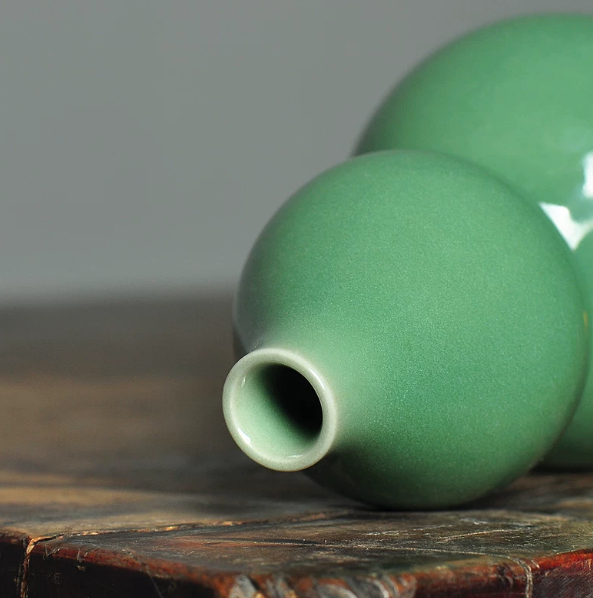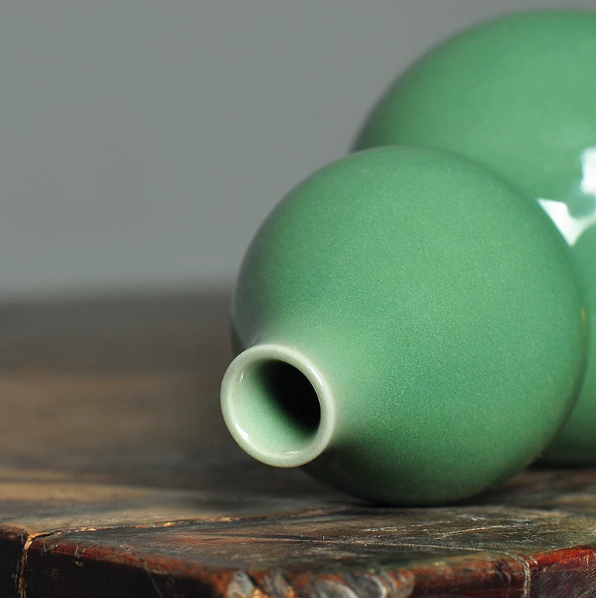 Celadon Mini Gourd Tea Table Ornament Vase Fu Lu Charm Ha…
