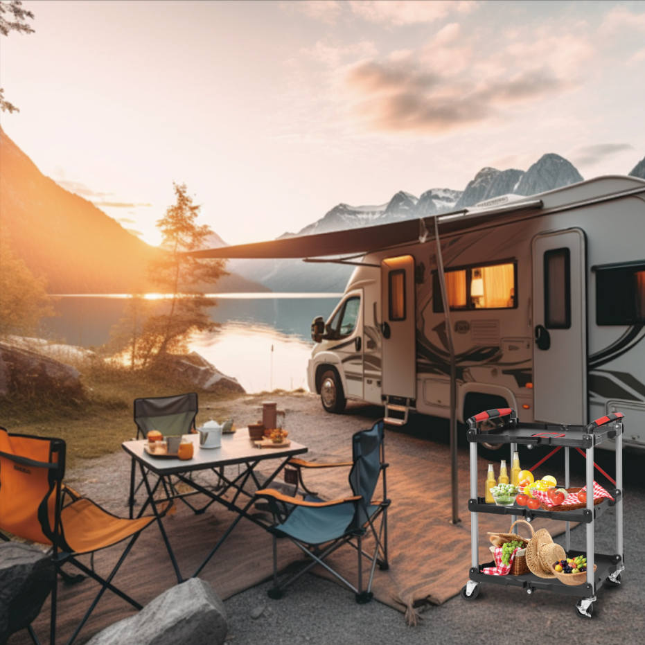 Save Space:To ensure efficient use of space,this cart is designed to be fold easily and store easily.Simply lift the handle on the first level of the trolley and you can easily fold it up without any other cumbersome steps.Simply lift the handle on the first tier of the cart and you can easily fold it up without any cumbersome steps.With a folded width of only 5.68″ you can put it in a corner or put it in your car and take it with you.