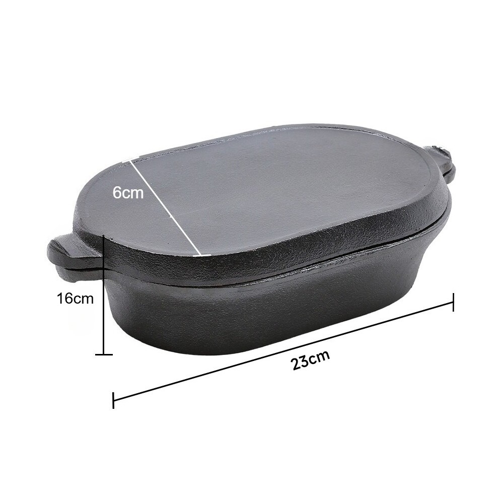 2-in-1 braiser pan with lid is the perfect pre-seasoned cast iron cookware for searing meat, broiling, brazier, sautéing, simmering on the hob, baking, and roasting.This cast iron griddle pan is suited to high surface temperature cooking. This pan is perfect for stews, pot roasts, and other slow-cooked meals.This cast iron lid can be used as a griddle to cook pancakes or eggs on top of your braised dish!The stove-top griddle pan has two wide and sturdy handles on the side, convenient to carry the pot without worrying about the heat burning your hands.