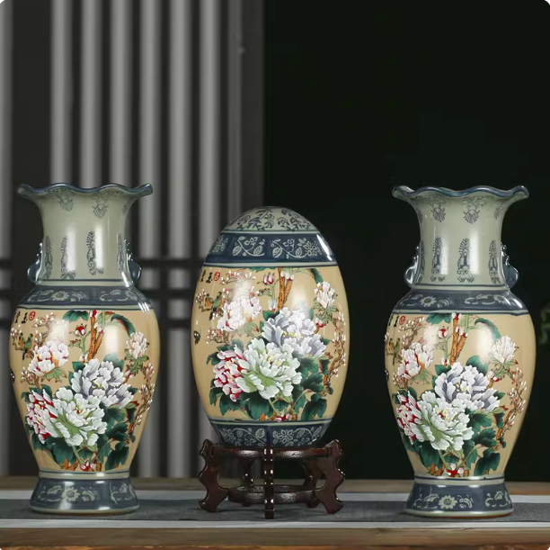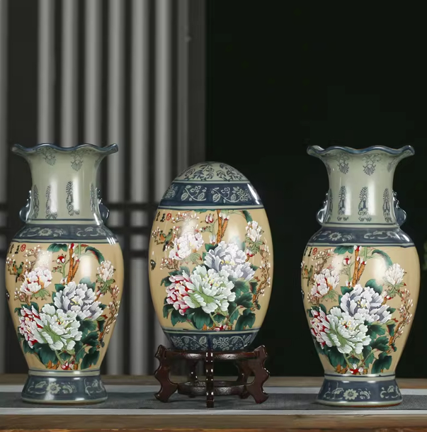 Household Ceramic Three-Piece Vase Set Living Room Decora…