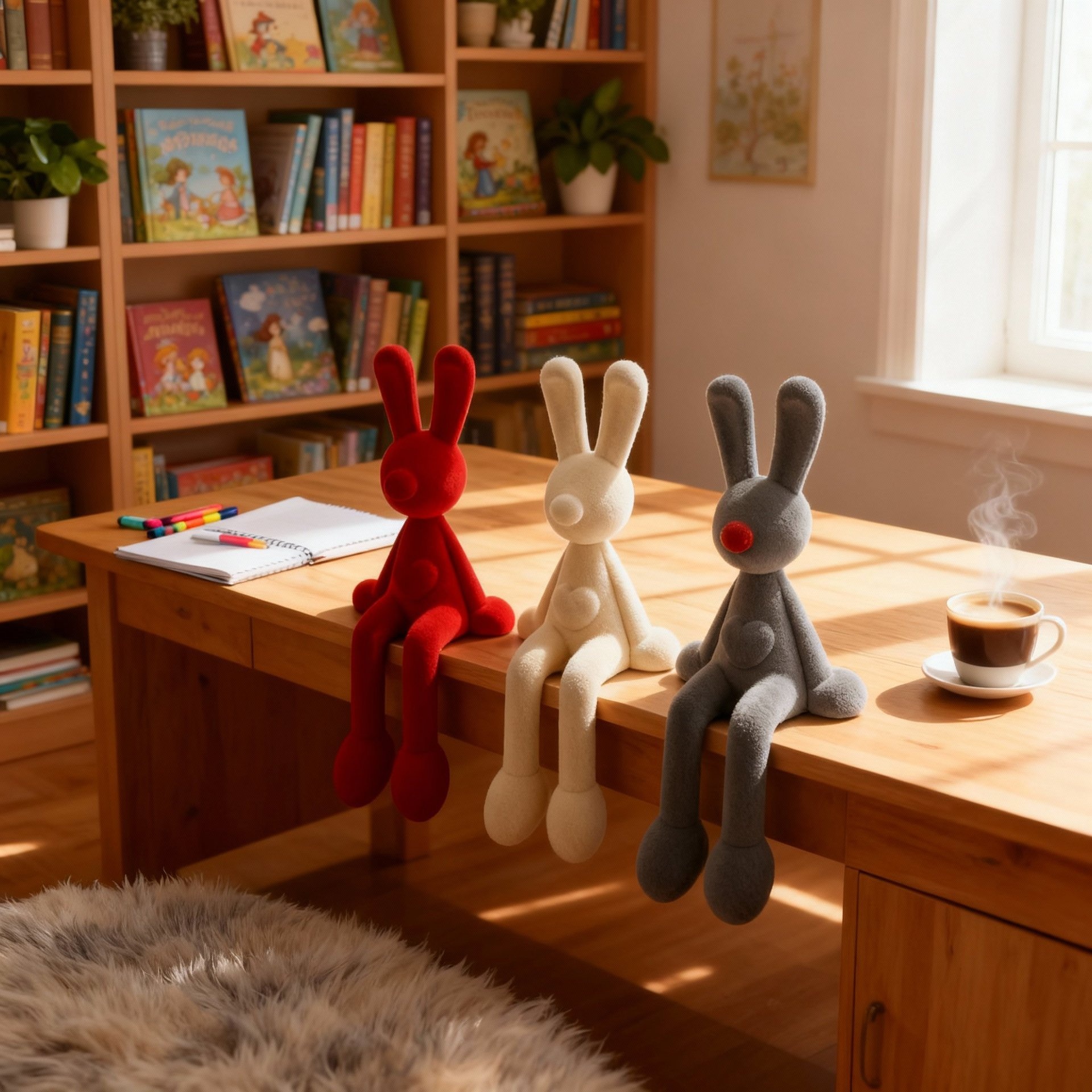 Light Luxury High-End Flocked Rabbit Figurine for Desk Decor