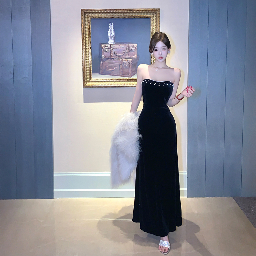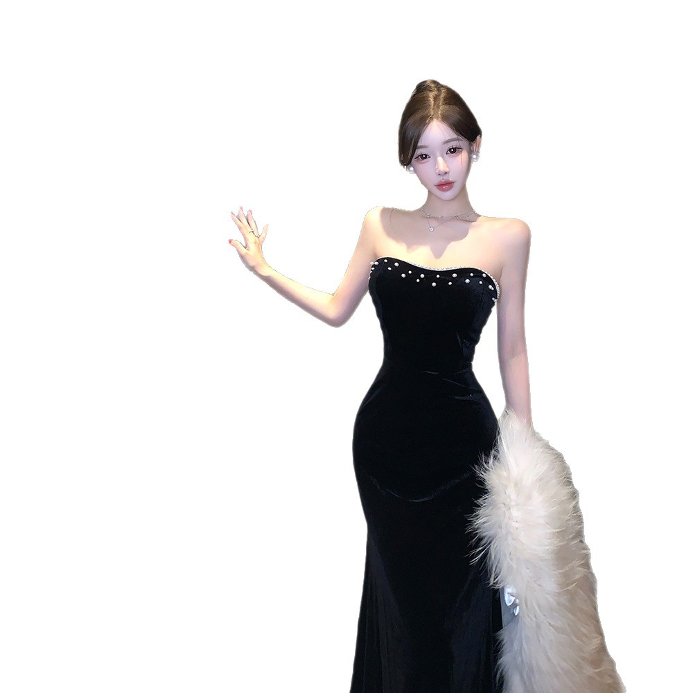 Luxury Celebrity-Style Strapless Evening Gown Velvet Wais…