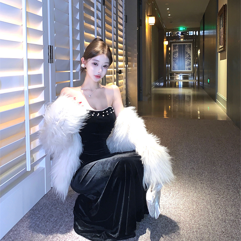 Product information:Color: BlackWaist Style: High WaistSizes: S, M, LStyle Type: Celebrity-Style Casual WearCombination: Single PieceSkirt Length: Long SkirtTrendy Element: Tie-DyeDesign: Hooded StyleFabric Name: VelvetOccasion: Date NightMain Fabric Composition: Polyester