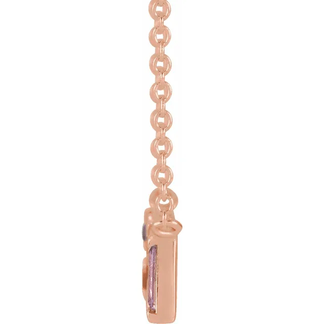 14K Rose Gold Pink Multi-Gemstone & 1/8 CTW Diamond Bar Necklace