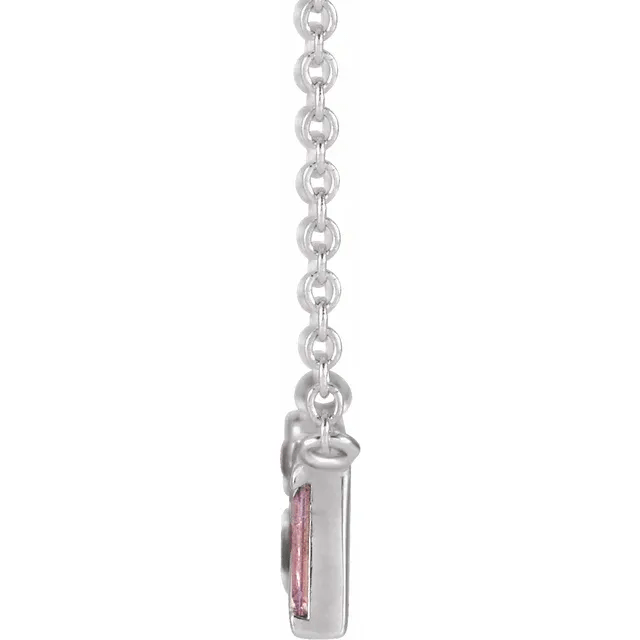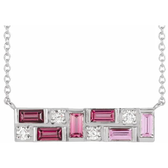 14K White Gold Pink Multi-Gemstone & 1/8 CTW Diamond Bar Necklace
