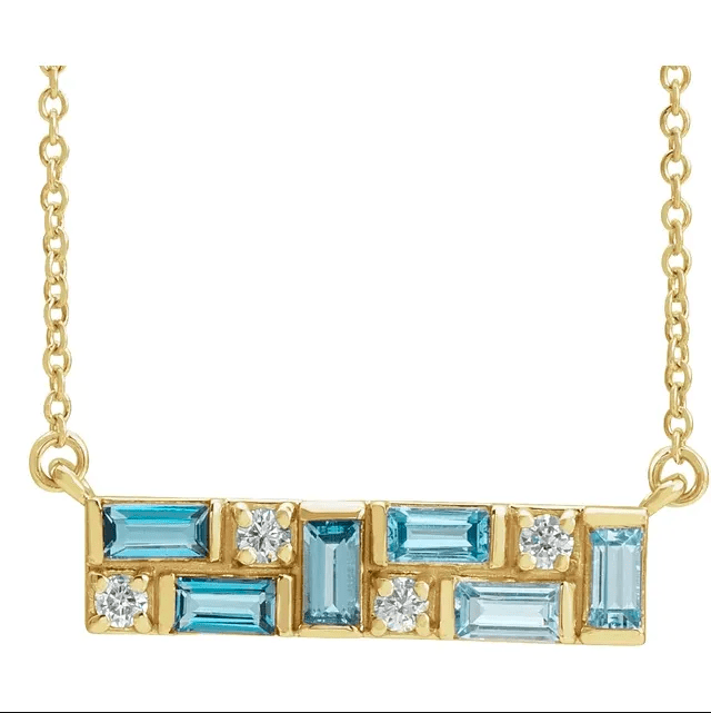 14K Yellow Gold Blue Multi-Gemstone & 1/8 CTW Diamond Bar Necklace