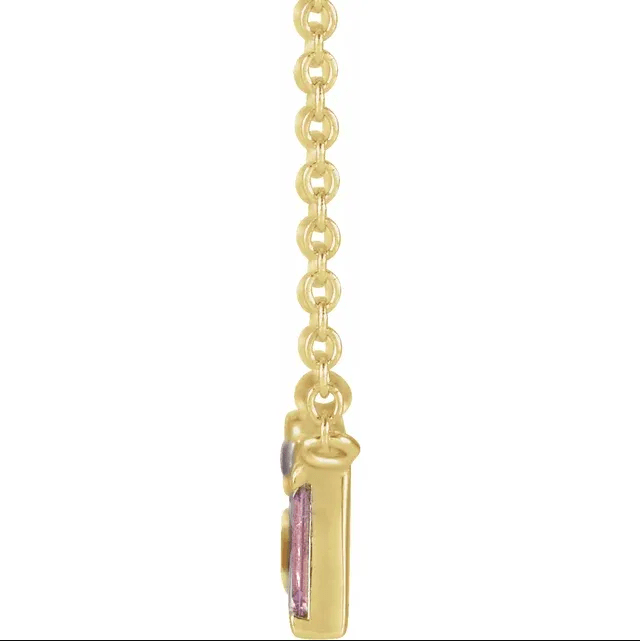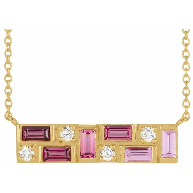 14K Yellow Gold Pink Multi-Gemstone & 1/8 CTW Diamond Bar Necklace