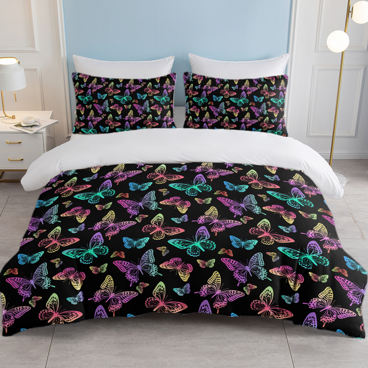 Neon Butterfly Printed Duvet Cover Set – Colorful Microfi…