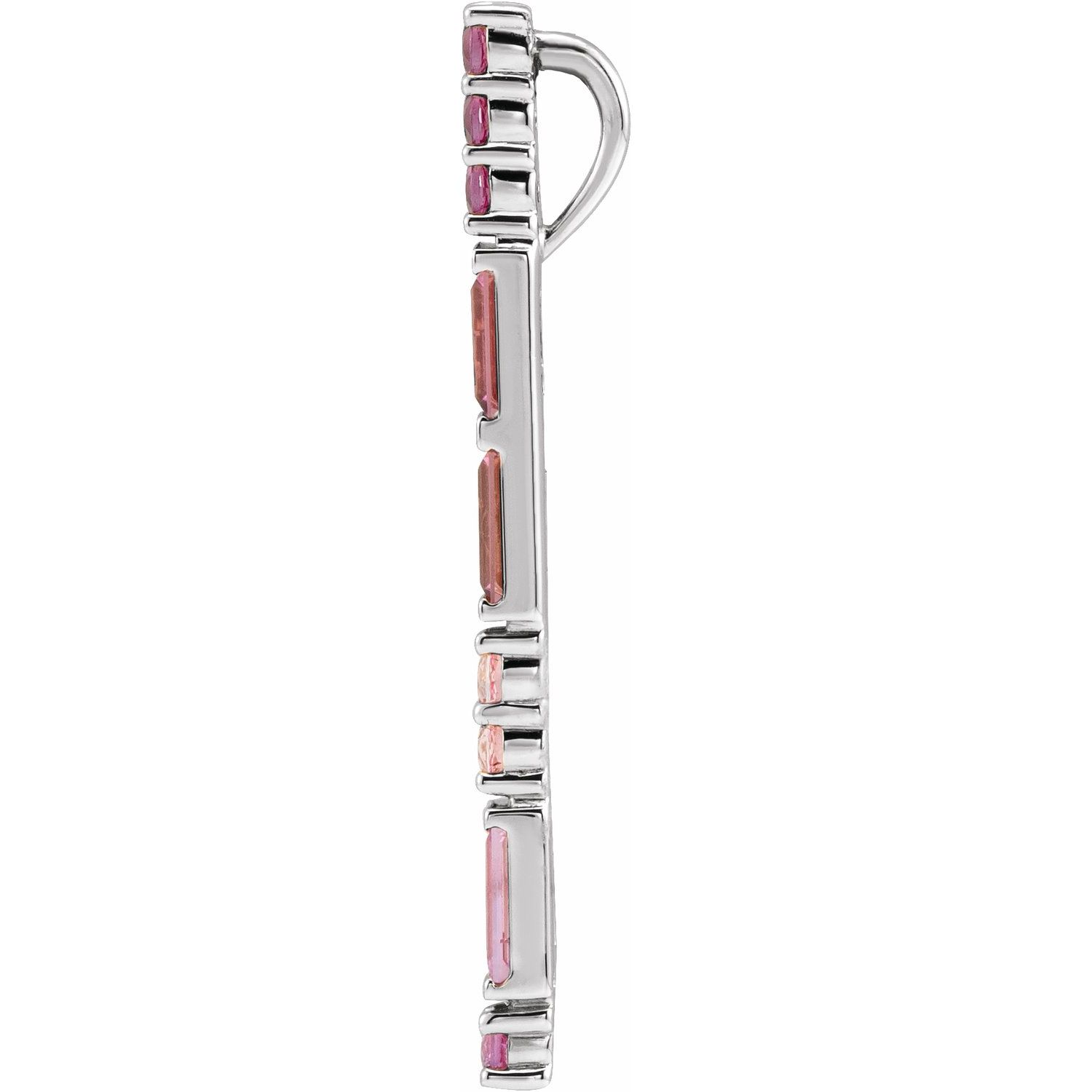 14K White Gold Pink Multi-Gemstone Bar Pendant