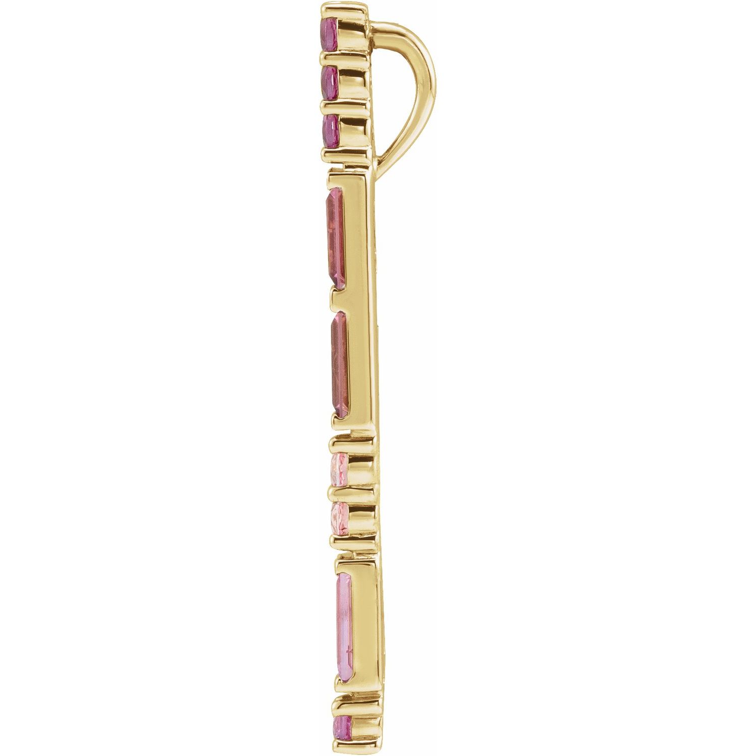 14K Yellow Gold Pink Multi-Gemstone Bar Pendant