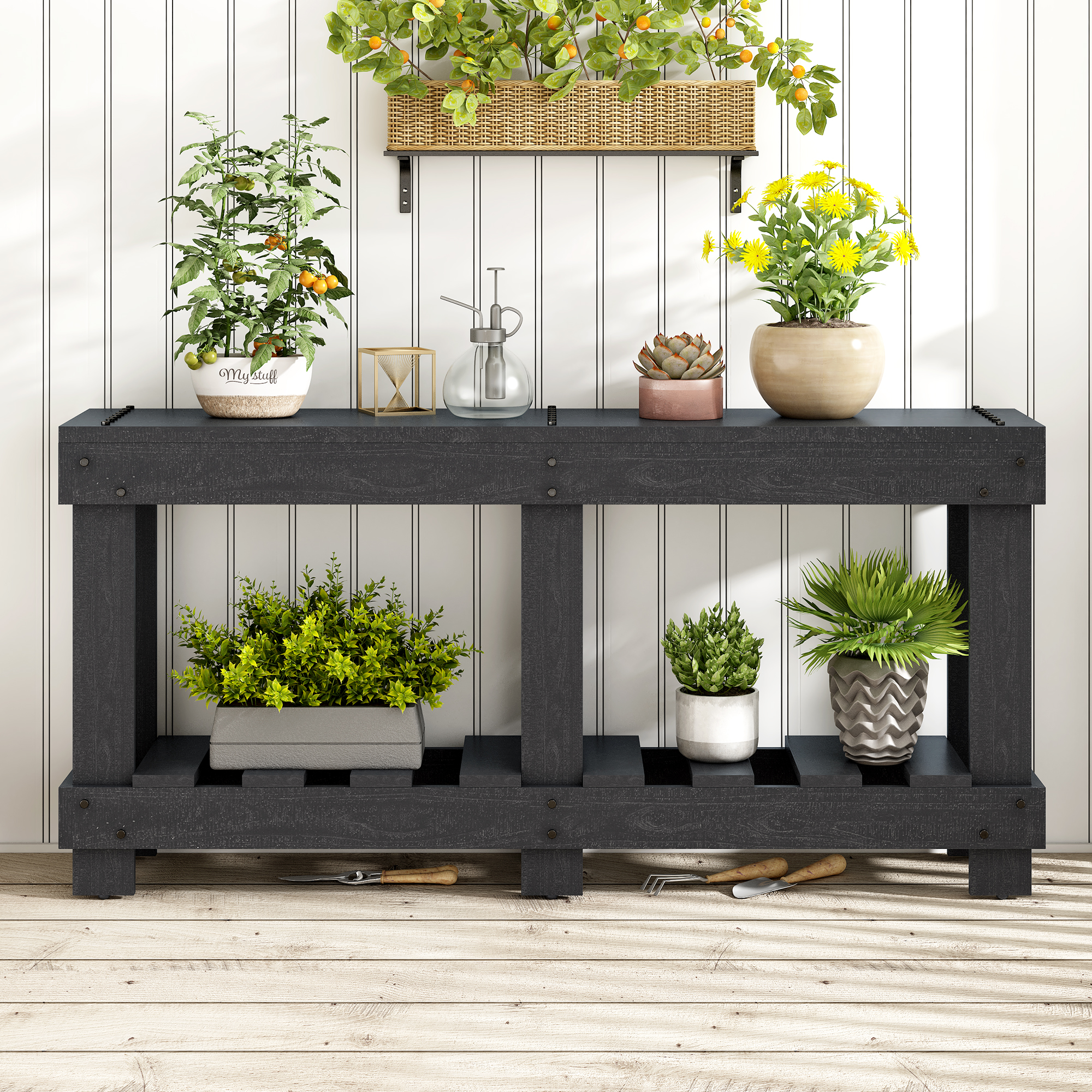 Product InfoSpecificationProduct InformationItem Code:N711P289135BProduct Type :Single Box ProductProduct Name:U_Style 62.9″ Vintage Entryway Table – Fir Solid Wood with Natural Grain, 6 Reinforced Legs & 4.5″ Thick Desktop, Metal Rivet Decor & Plank Under-Shelf, Console Table for Hallway, Living RoomMain Color:BlackMain Material:Solid WoodProduct DimensionsAssembled Length (in.):63.00Assembled Width (in.):13.70Assembled Height (in.):30.10Product Weight (lbs.):31.00Package SizeLength (in.):69.21Width (in.):16.26Height (in.):11.61Weight (lbs.):43.30